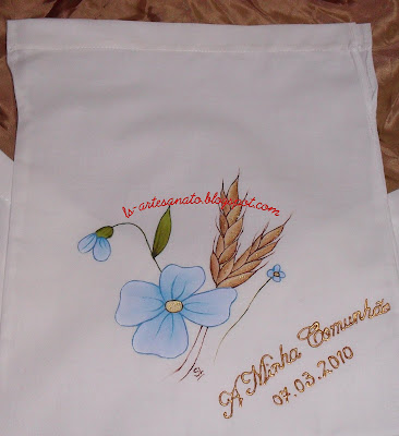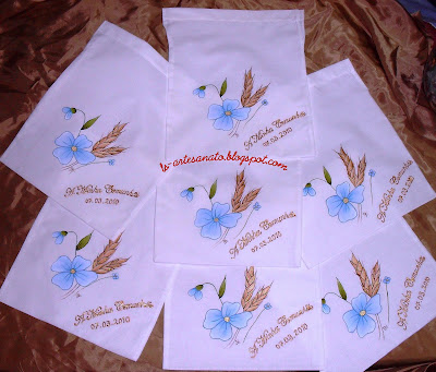 Saquinhas e paninho de tabuleiro pintados à mão.