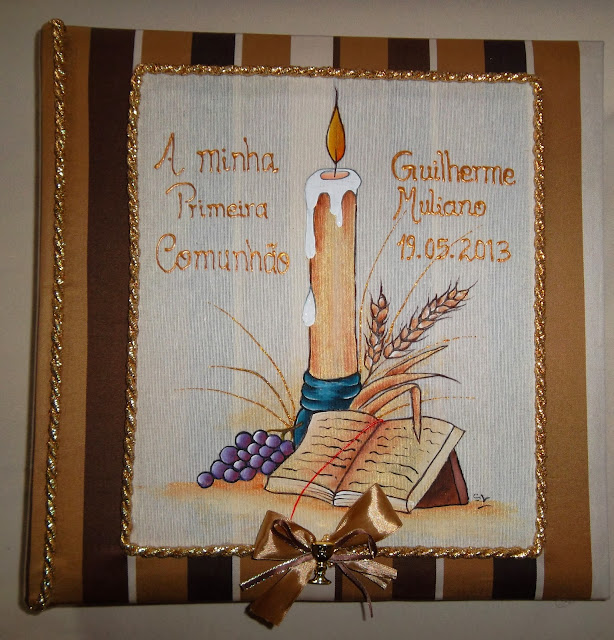 para guardar o fato de batizado, vela, e sapatos/conha ou toalha