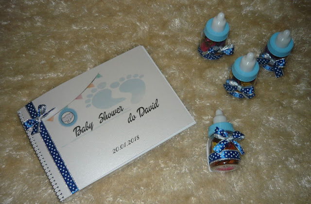 Do lado esquerdo é um biberão grande onde cabem 30 biberões pequenos... biberão este, que serve de mealheiro !! ou até mesmo de decoração no dia do Batizado...